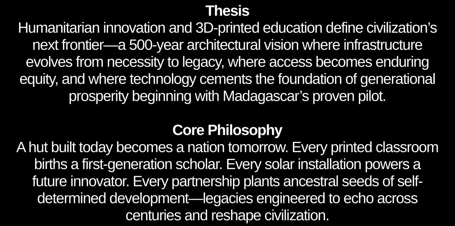 I contributed strategic advisory and teaching-oriented support to initiatives using advanced construction methods, including large-scale three dimensional concrete printing, to rapidly deploy sustainable school structures across regions. These environments are not treated as temporary solutions. They are designed as long-term storytelling vessels places where culture, language, and learning coexist.